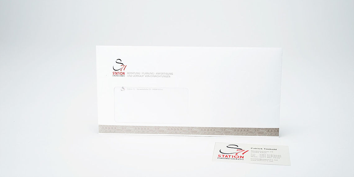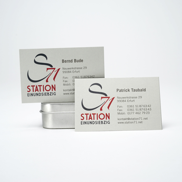 Die Visitenkarten haben auf der Rückseite ein "Tapetenmuster" mit dem S71-Symbol.